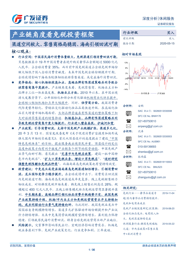 【广发证券】【20200515】产业链角度看免税投资框架:渠道空间较大、零售商格局稳固、海南引领回流可期-35页