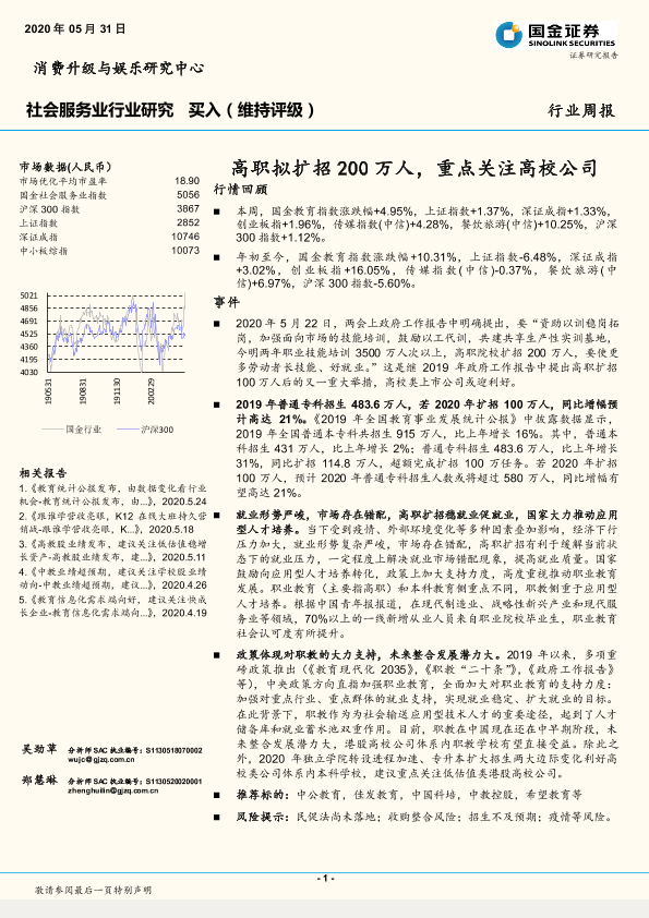 【国金证券】【20200531】社会服务业行业研究:高职拟扩招200万人,重点关注高校公司-10页