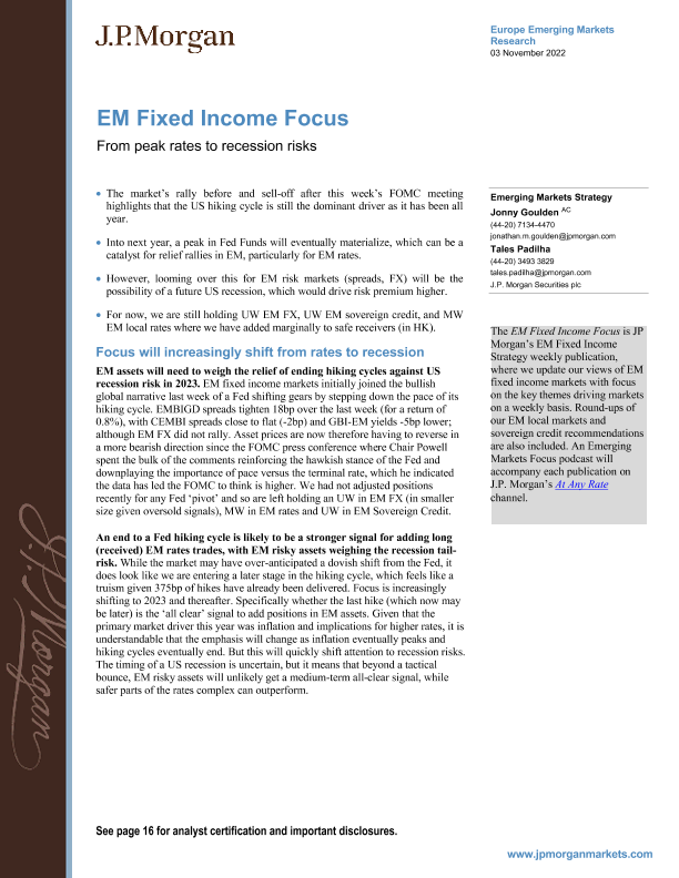 【J.P. Morgan】【20221103】EM Fixed Income Focus From peak rates to recession risks-20页