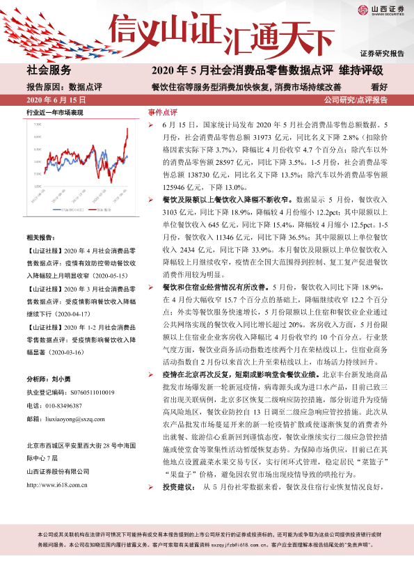 【山西证券】【20200615】2020年5月社会消费品零售数据点评-4页
