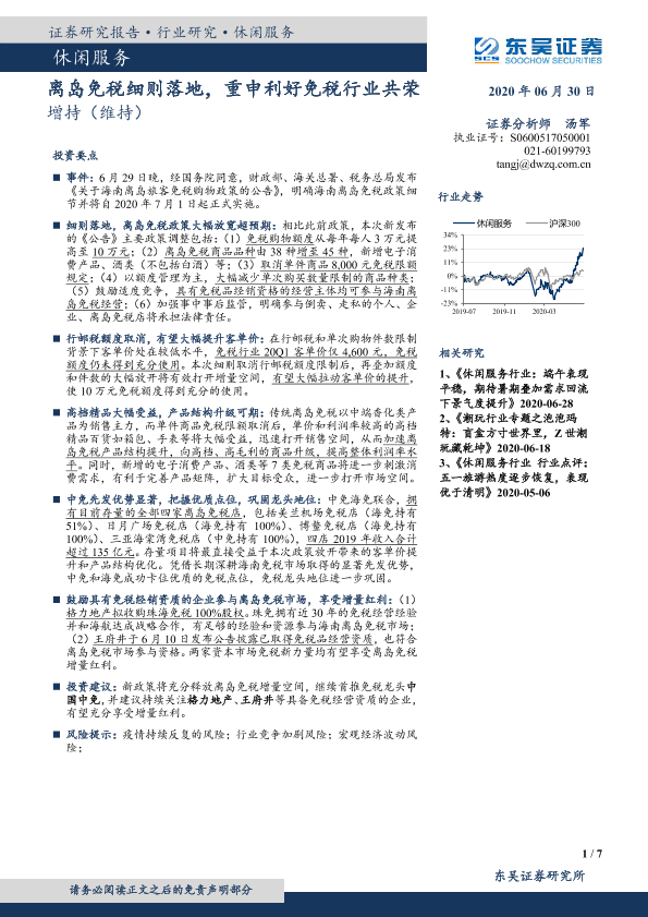 【东吴证券】【20200630】离岛免税细则落地,重申利好免税行业共荣-7页