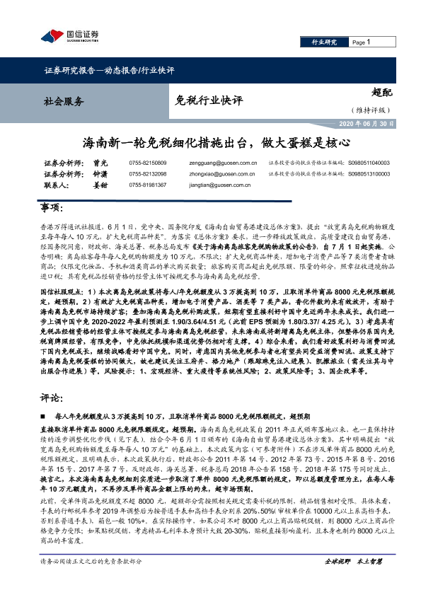 【国信证券】【20200630】海南新一轮免税细化措施出台,做大蛋糕是核心-9页