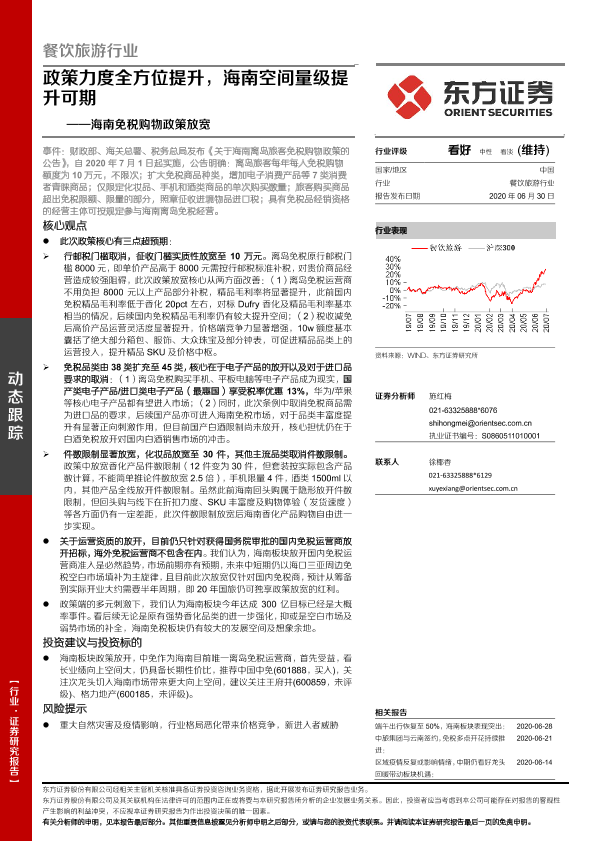 【东方证券】【20200630】餐饮旅游行业动态跟踪:海南免税购物政策放宽-6页