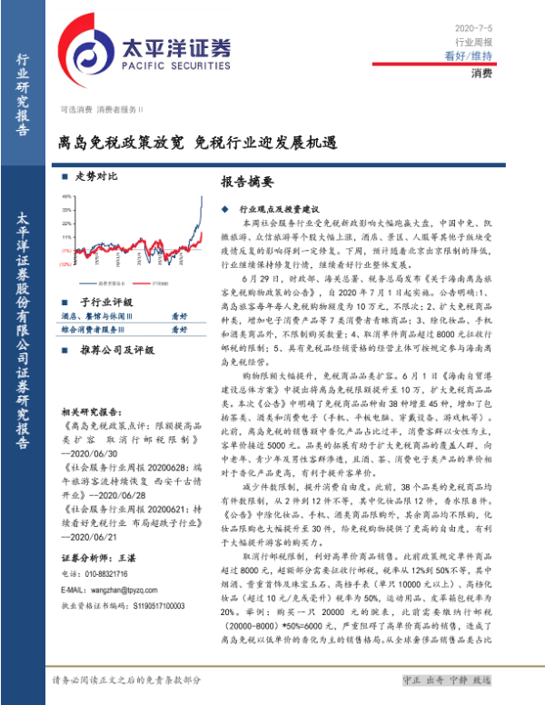 【太平洋证券】【20200705】消费行业周报:离岛免税政策放宽 免税行业迎发展机遇-15页