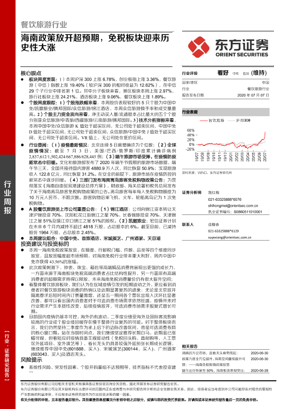 【东方证券】【20200707】餐饮旅游行业周报:海南政策放开超预期,免税板块迎来历史性大涨-20页