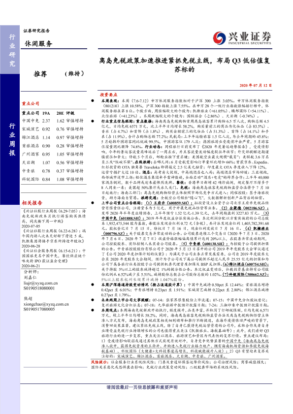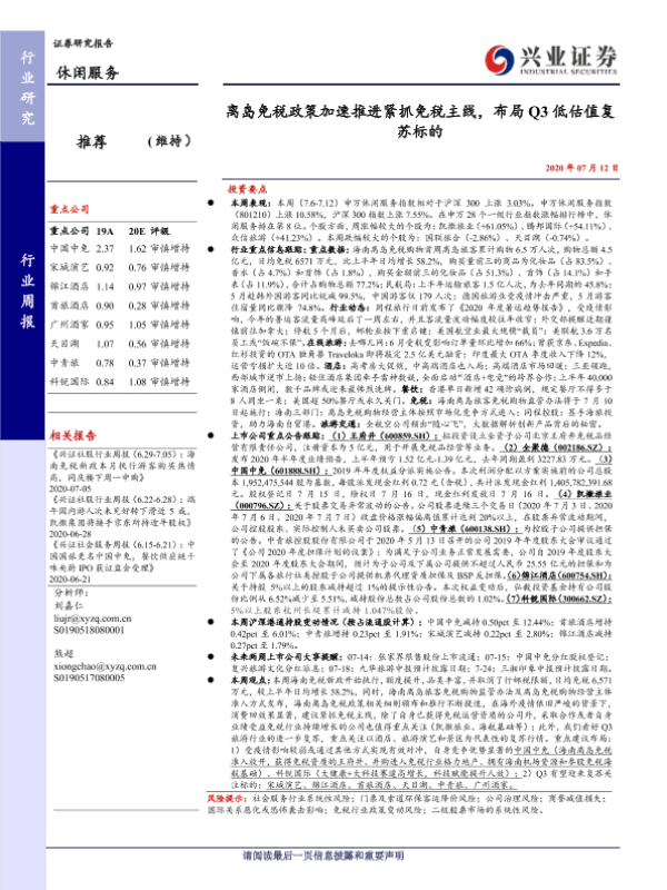 【兴业证券】【20200712】离岛免税政策加速推进紧抓免税主线,布局Q3低估值复苏标的-17页