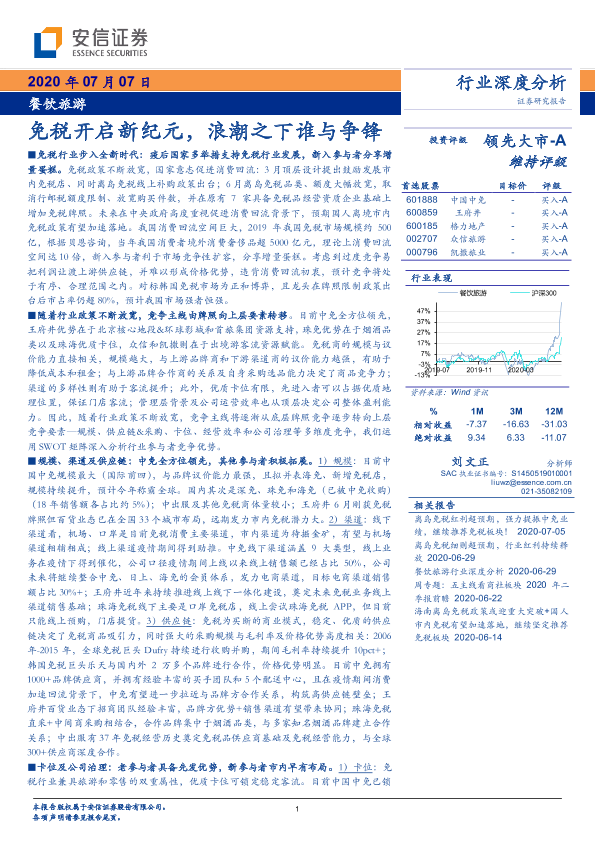 【安信证券】【20200707】餐饮旅游行业深度分析:免税开启新纪元,浪潮之下谁与争锋-50页