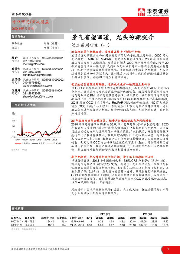 【华泰证券】【20200713】酒店系列研究(一):景气有望回暖,龙头份额提升-32页
