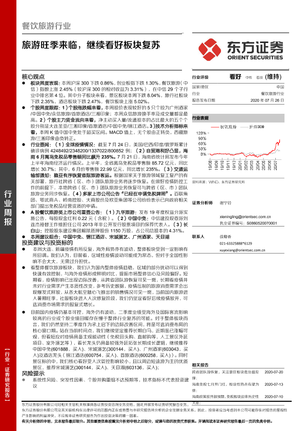 【东方证券】【20200726】餐饮旅游行业周报:旅游旺季来临,继续看好板块复苏-19页