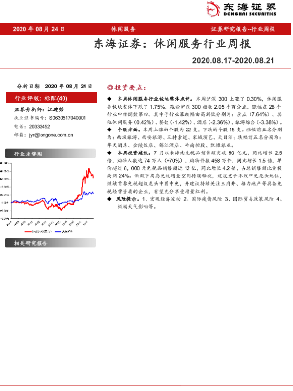【东海证券】【20200824】休闲服务行业周报-8页