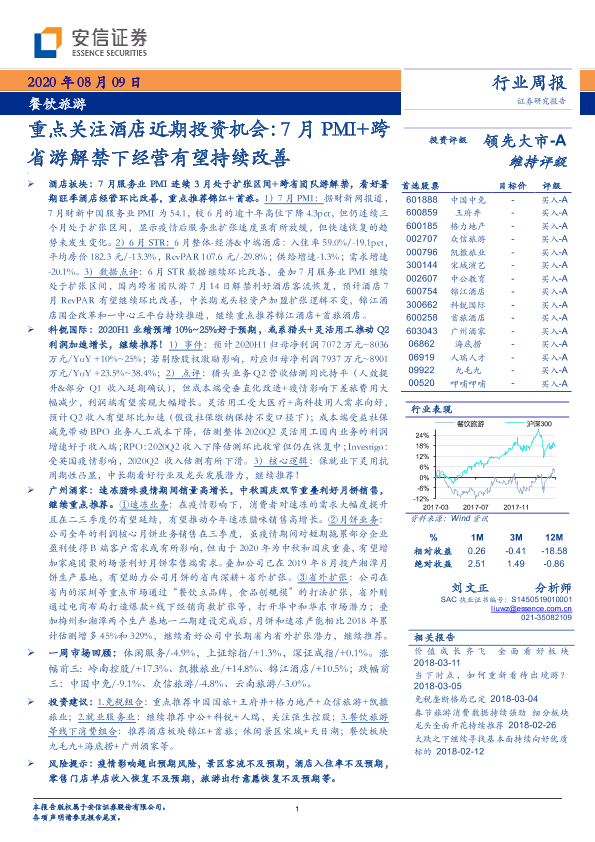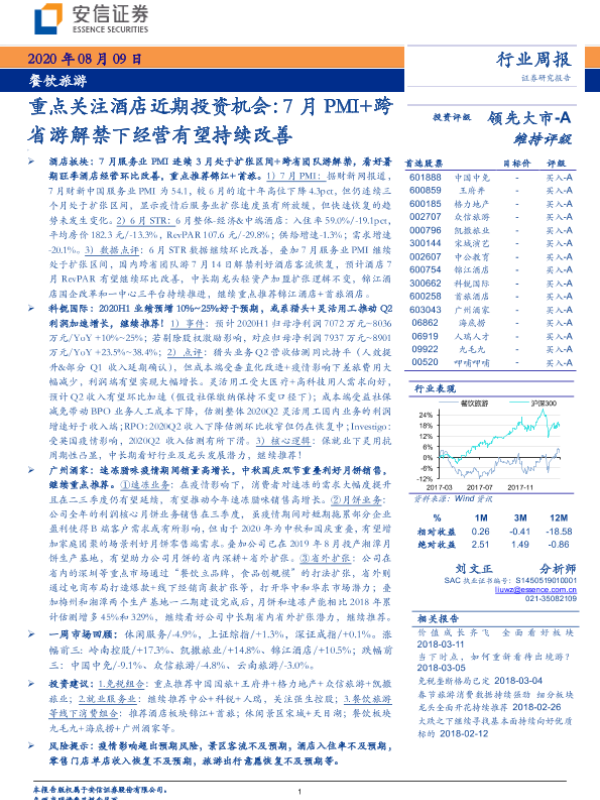 【安信证券】【20200809】餐饮旅游行业周报:重点关注酒店近期投资机会-14页