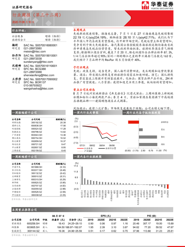 【华泰证券】【20200810】社会服务行业周报(第三十二周)-12页