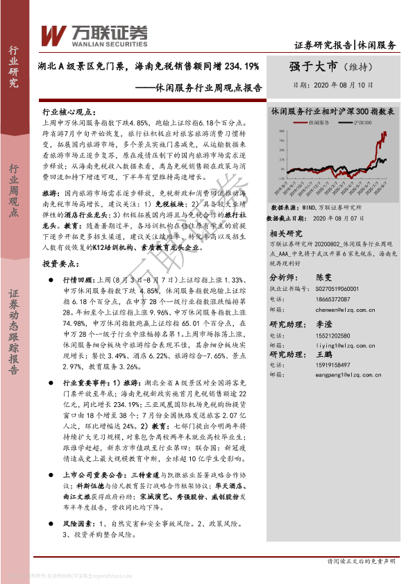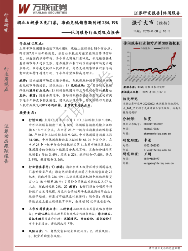【万联证券】【20200810】湖北A级景区门票,海南免税销售额同增234.19%-10页
