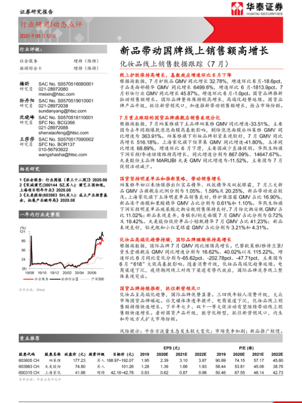 【华泰证券】【20200812】化妆品线上销售数据跟踪(7月):新品带动国牌线上销售额高增长-18页