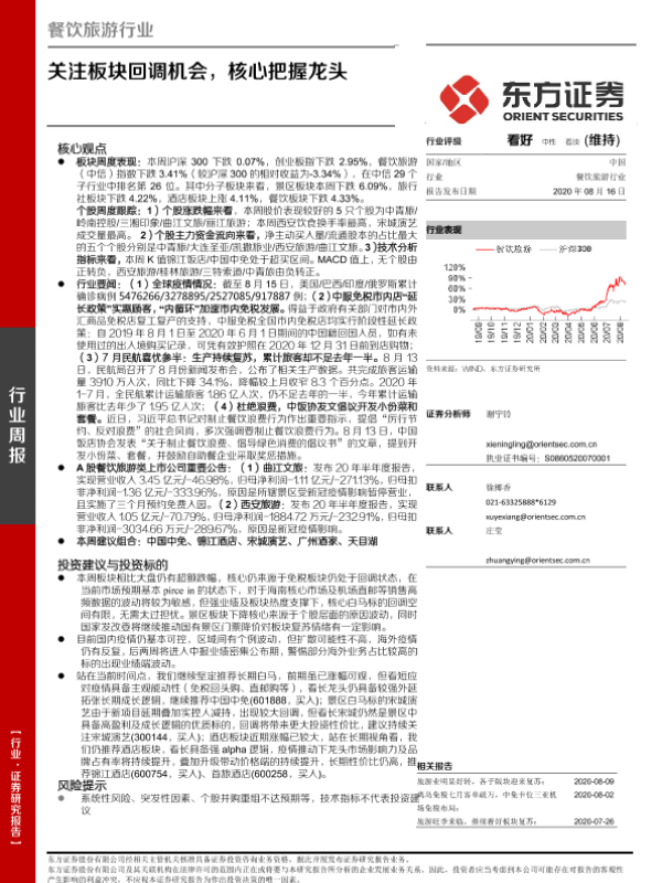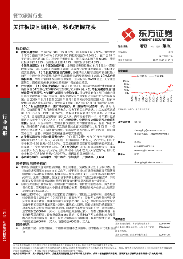 【东方证券】【20200816】餐饮旅游行业周报:关注板块回调机会,核心把握龙头-19页