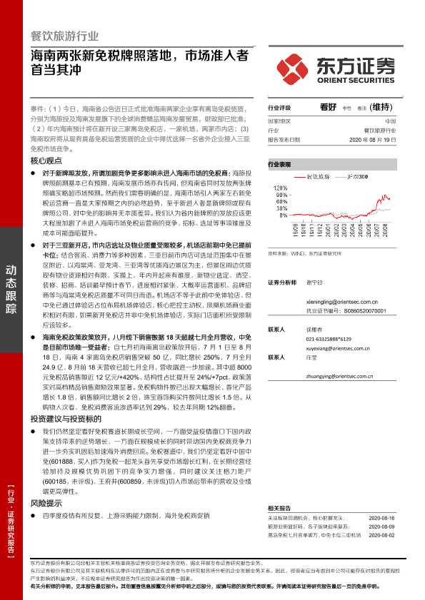 【东方证券】【20200819】餐饮旅游行业动态跟踪:海南两张新免税牌照落地,市场准入者首当其冲-3页