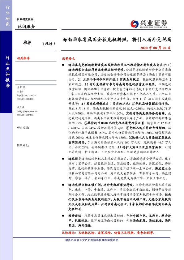 【兴业证券】【20200820】海南两家省属国企获免税牌照,将引入省外免税商-11页