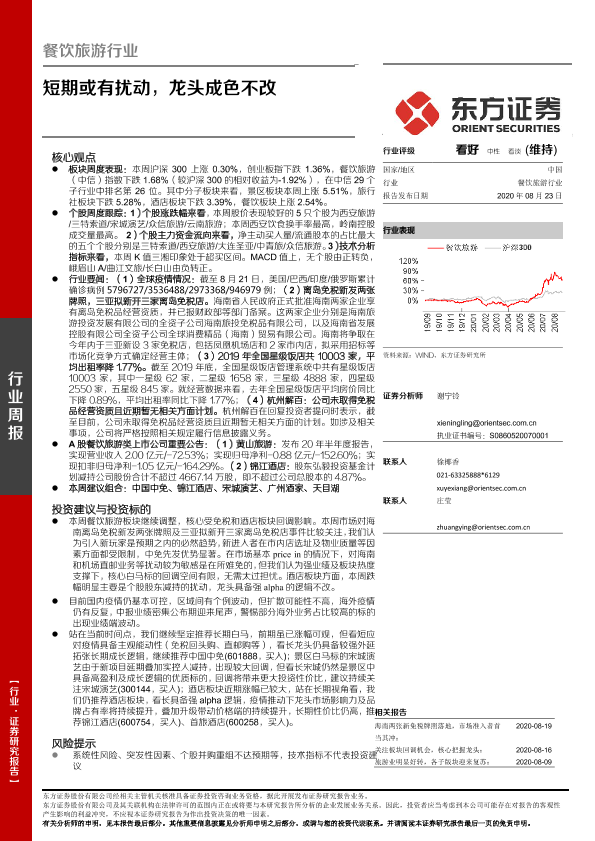 【东方证券】【20200823】餐饮旅游行业周报:短期或有扰动,龙头成色不改-19页