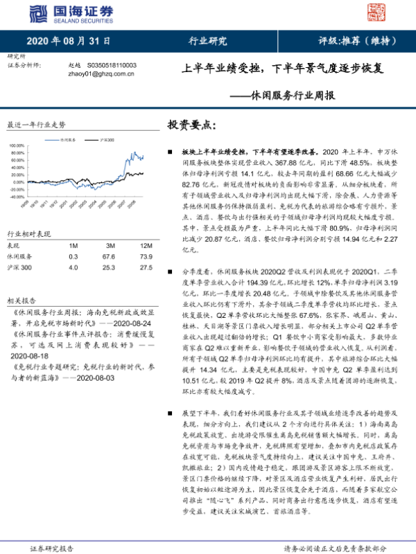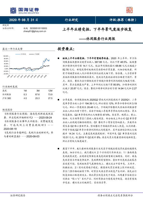 【国海证券】【20200831】休闲服务行业周报:上半年业绩受挫,下半年景气度逐步恢复-10页