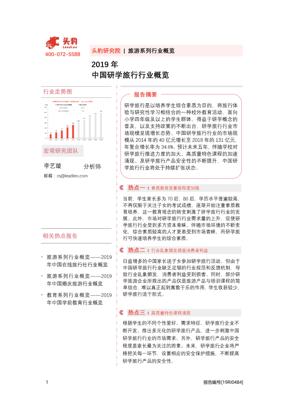 【头豹研究院】【2019】中国研学旅行行业概览-30页