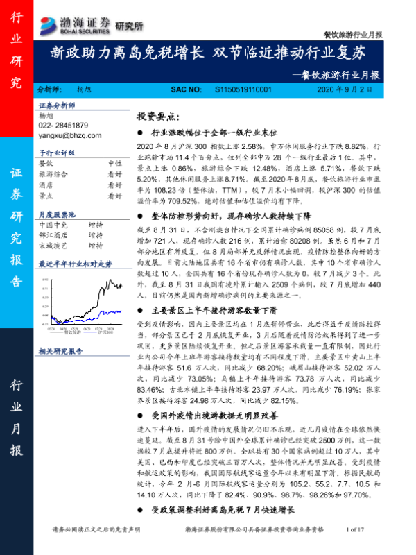 【渤海证券】【20200902】餐饮旅游行业月报:新政助力离岛免税增长 双节临近推动行业复苏-17页