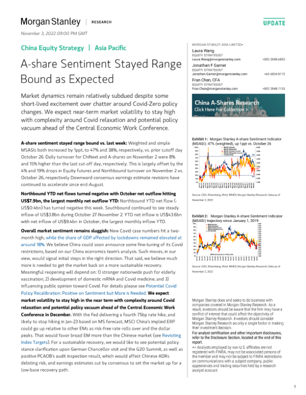 【Morgan Stanley】【20221103】China Equity Strategy A-share Sentiment Stayed Range Bound ...-10页