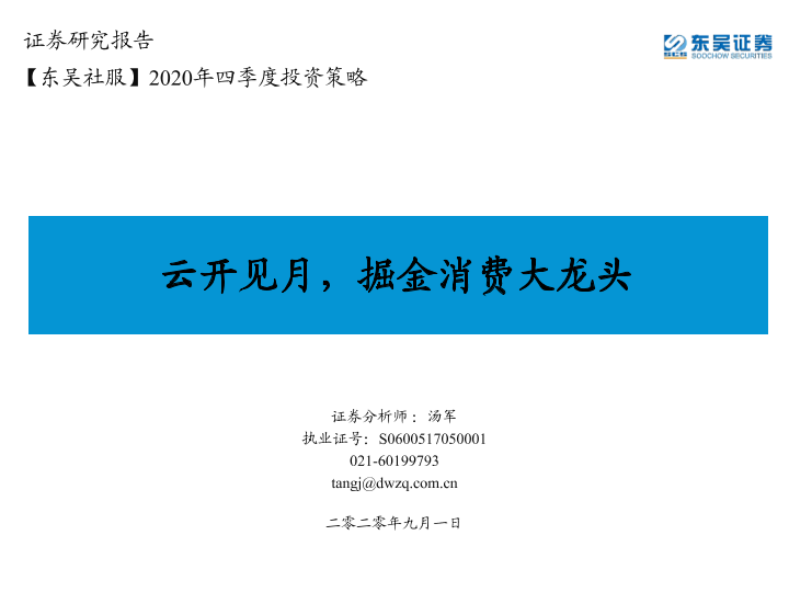 【东吴证券】【20200901】2020年四季度投资策略:云开见月,掘金消费大龙头-51页