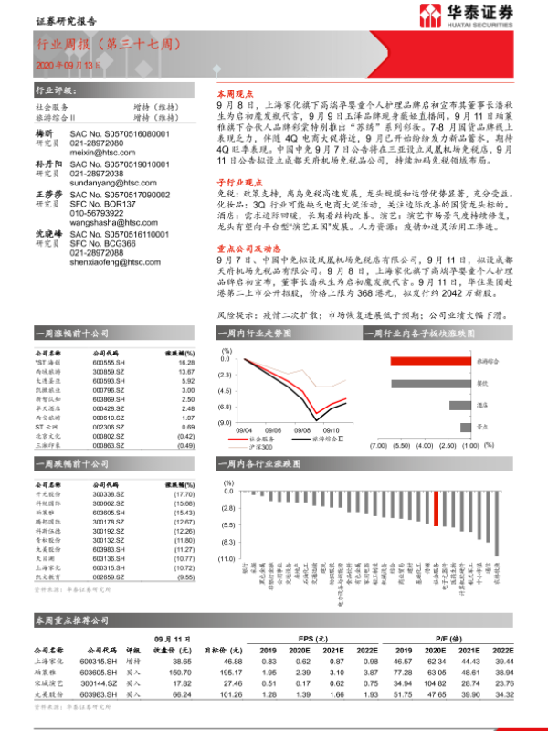 【华泰证券】【20200913】社会服务行业周报(第三十七周)-13页