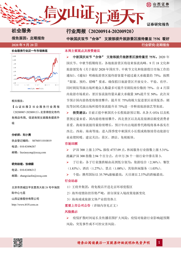 【山西证券】【20200920】社会服务行业周报:中秋国庆双节“合体”文旅部提升旅游景区接待量至75%-9页