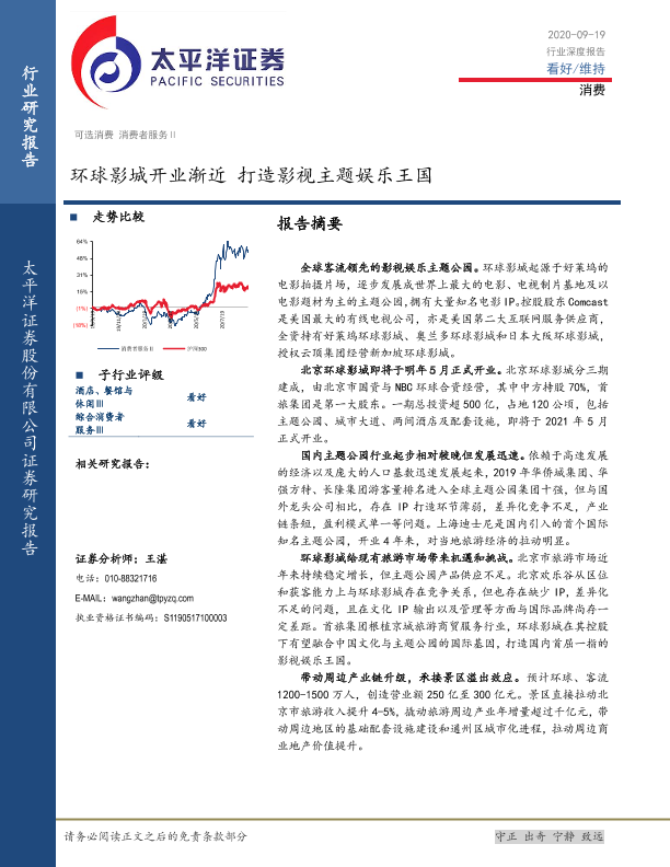 【太平洋证券】【20200919】消费行业深度报告:环球影城开业渐近 打造影视主题娱乐王国-27页