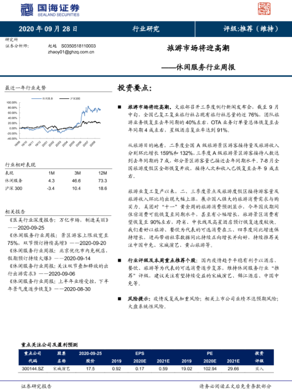 【国海证券】【20200928】休闲服务行业周报:旅游市场将迎高潮-10页