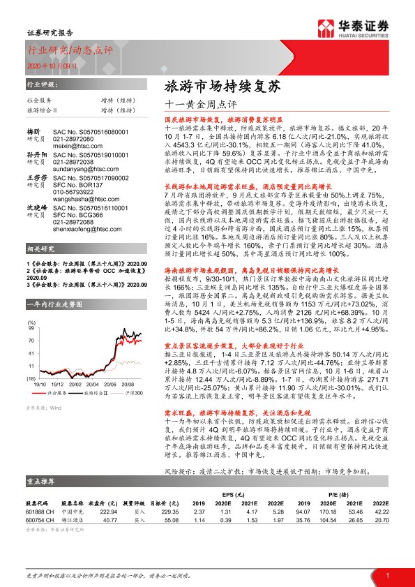 【华泰证券】【20201009】十一黄金周点评:旅游市场持续复苏-6页