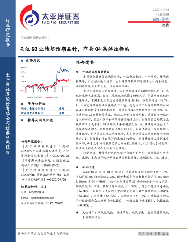 【太平洋证券】【20201018】消费行业周报:关注Q3业绩超预期品种,布局Q4高弹性标的-14页