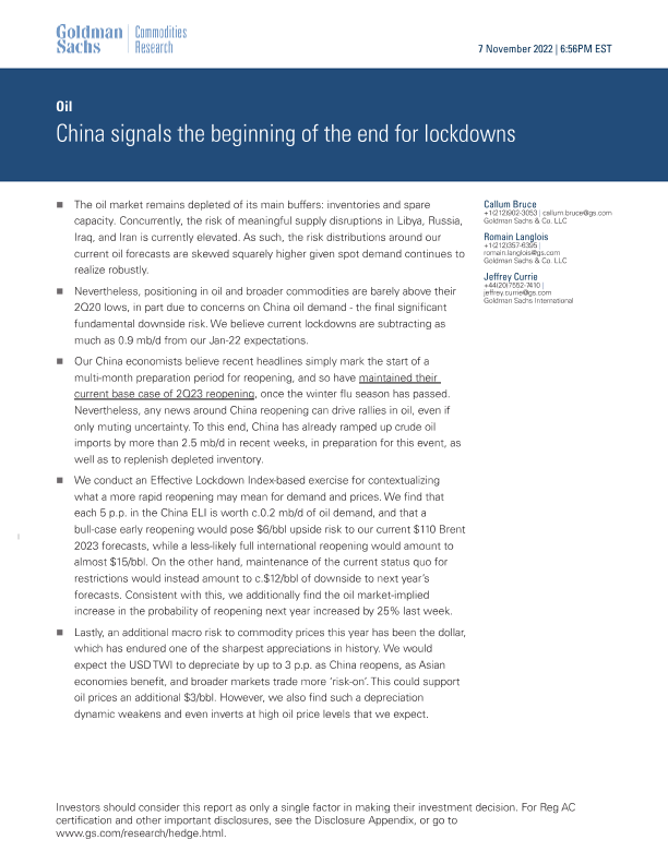 【Goldman Sachs】【20221107】Oil_ China signals the beginning of the end for lockdowns-10页