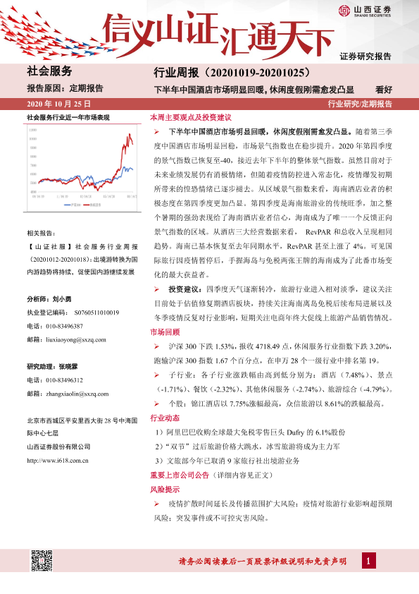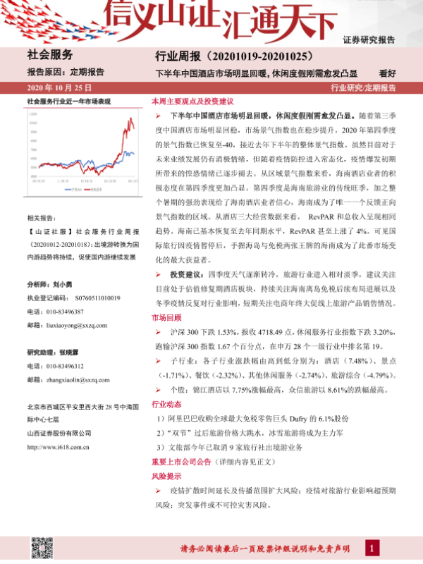 【山西证券】【20201025】社会服务行业周报:下半年中国酒店市场明显回暖,休闲度假刚需愈发凸显-9页