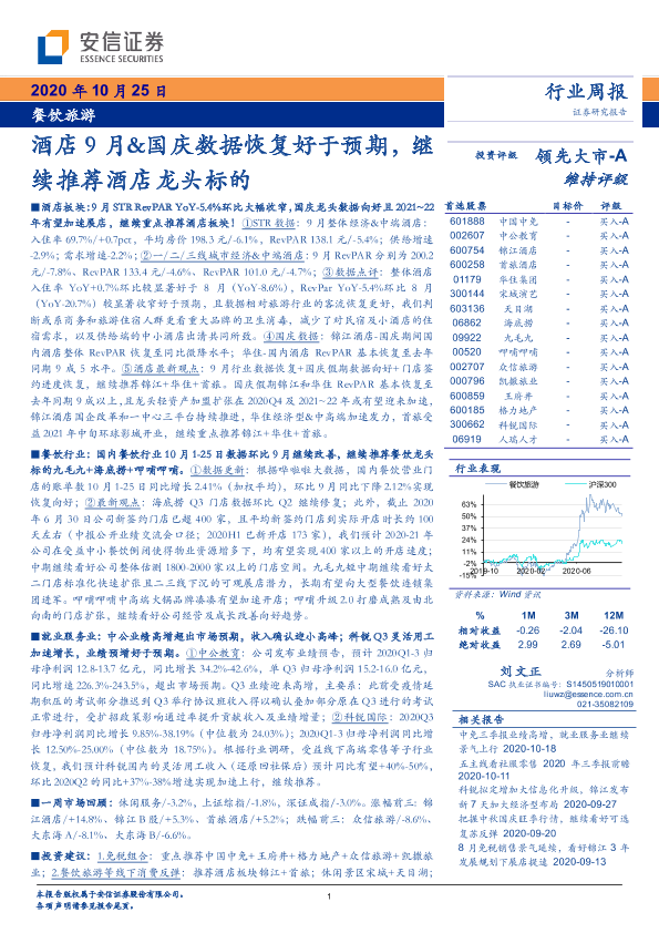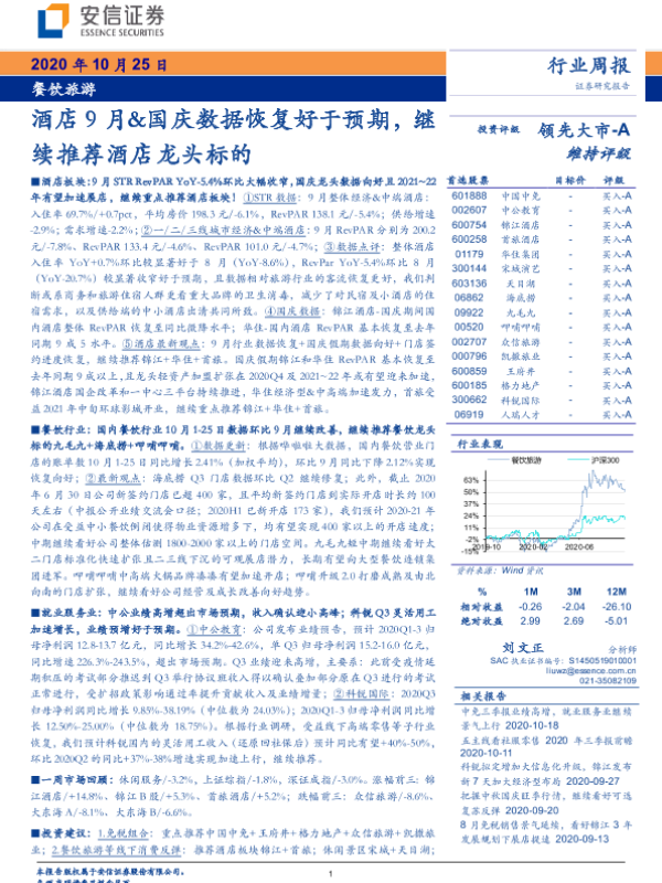 【安信证券】【20201025】餐饮旅游行业周报:酒店9月&国庆数据恢复好于预期-13页