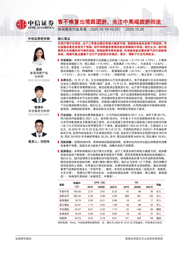 【中信证券】【20201026】暂不恢复出境跟团游,关注中高端旅游回流-13页