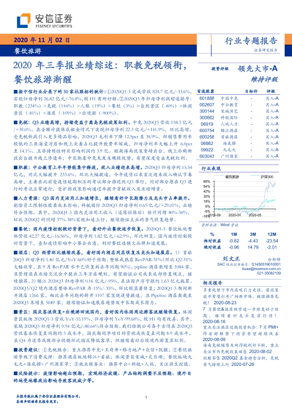 【安信证券】【20201102】2020年三季报业绩综述:职教免税领衔,餐饮旅游渐醒-17页