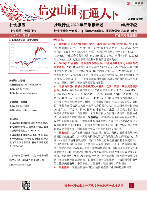 【山西证券】【20201104】社服行业2020年三季报综述-26页