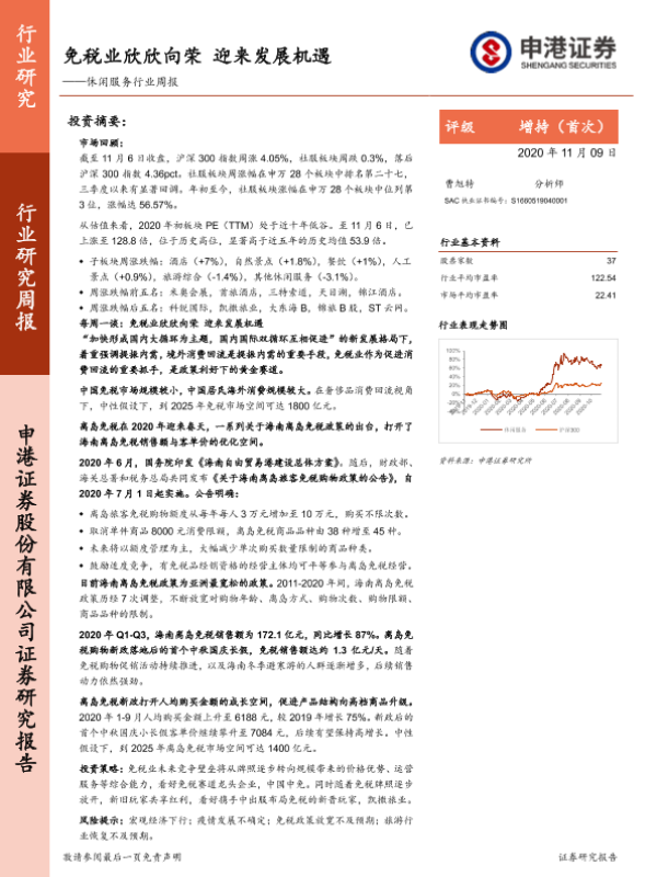 【申港证券】【20201109】休闲服务行业周报:免税业欣欣向荣迎来发展机遇-17页
