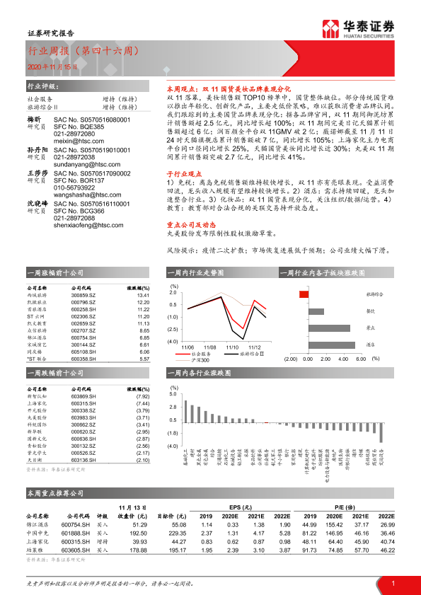 【华泰证券】【20201115】社会服务行业周报(第四十六周)-11页