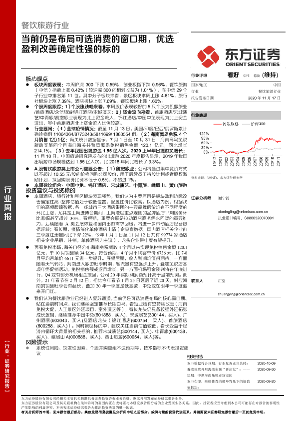 可选消费 投资建议 行业周报 证券研究报告 餐饮旅游