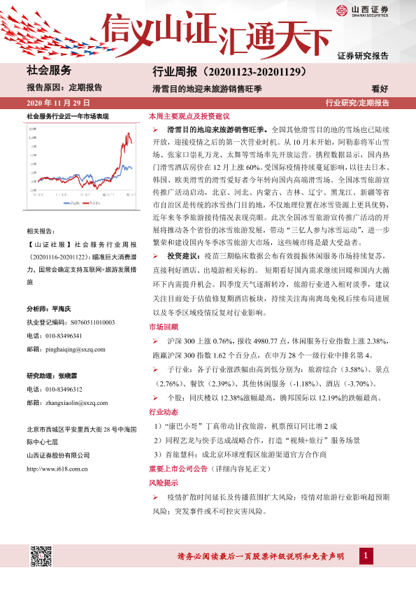 【山西证券】【20201129】社会服务行业周报:滑雪目的地迎来旅游销售旺季-9页