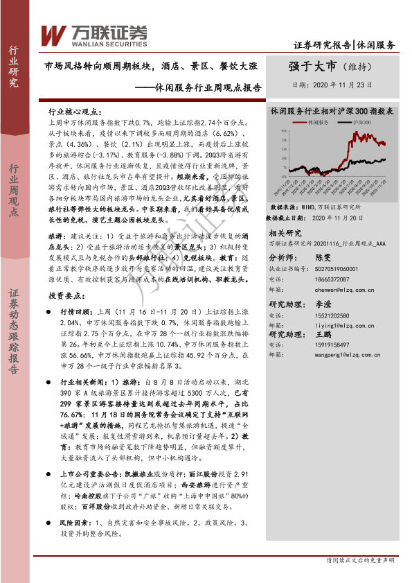 【万联证券】【20201123】市场风格转向顺周期板块,酒店、景区、餐饮大涨-12页