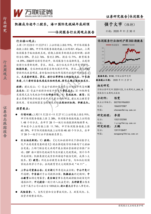 【万联证券】【20201130】休闲服务行业周观点报告:凯撒成为途牛二股东,海口国际免税城年底封顶-10页