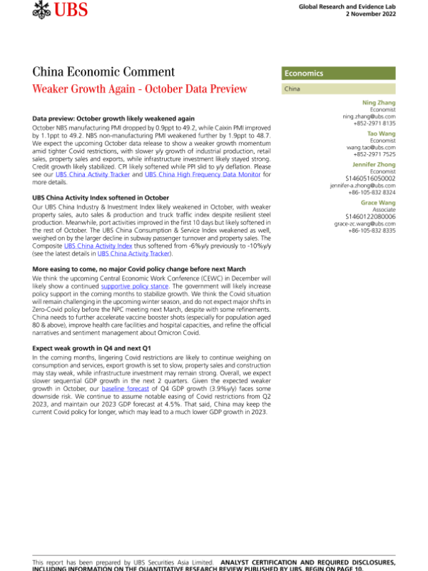 【UBS Securities Asia Limited】【20221102】Weaker Growth Again - October Data Preview-13页