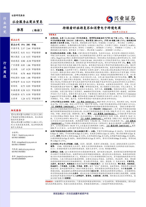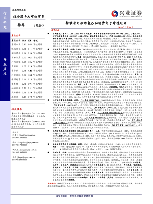 【兴业证券】【20201206】持续看好旅游复苏和消费电子跨境电商-18页