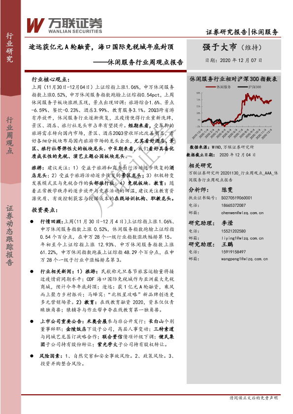 【万联证券】【20201207】休闲服务行业周观点报告:途远获亿元A轮融资,海口国际免税城年底封顶-12页