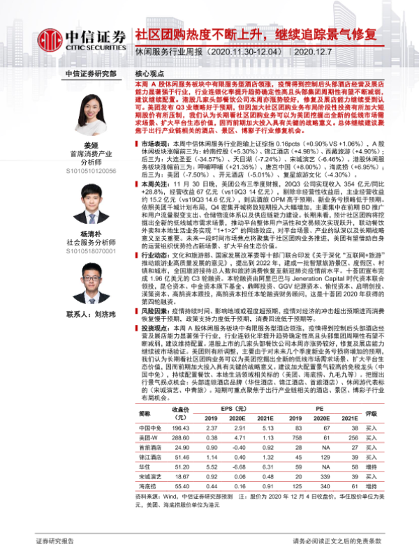 【中信证券】【20201207】休闲服务行业周报:社区团购热度不断上升,继续追踪景气修复-13页
