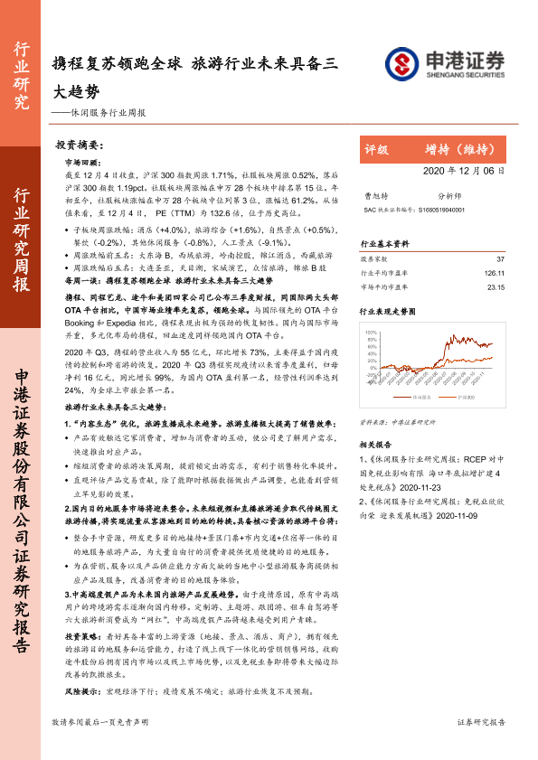 【申港证券】【20201206】休闲服务行业周报:携程复苏领跑全球 旅游行业未来具备三大趋势-12页